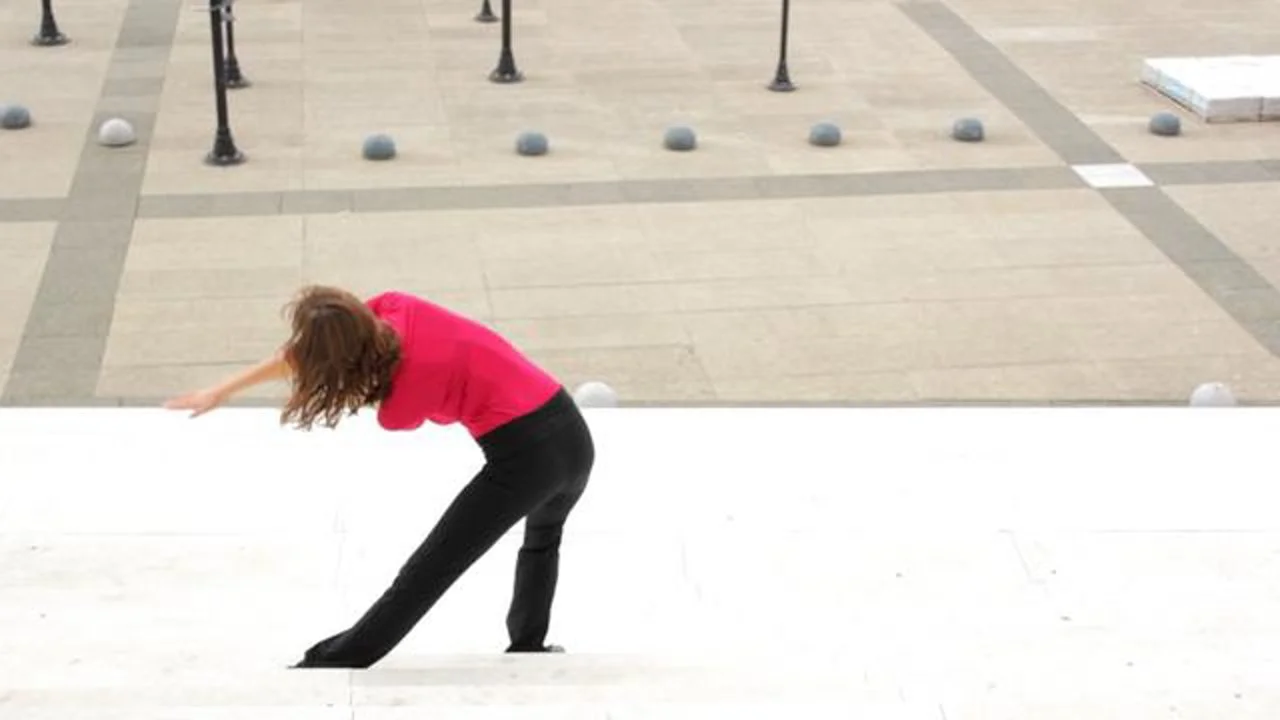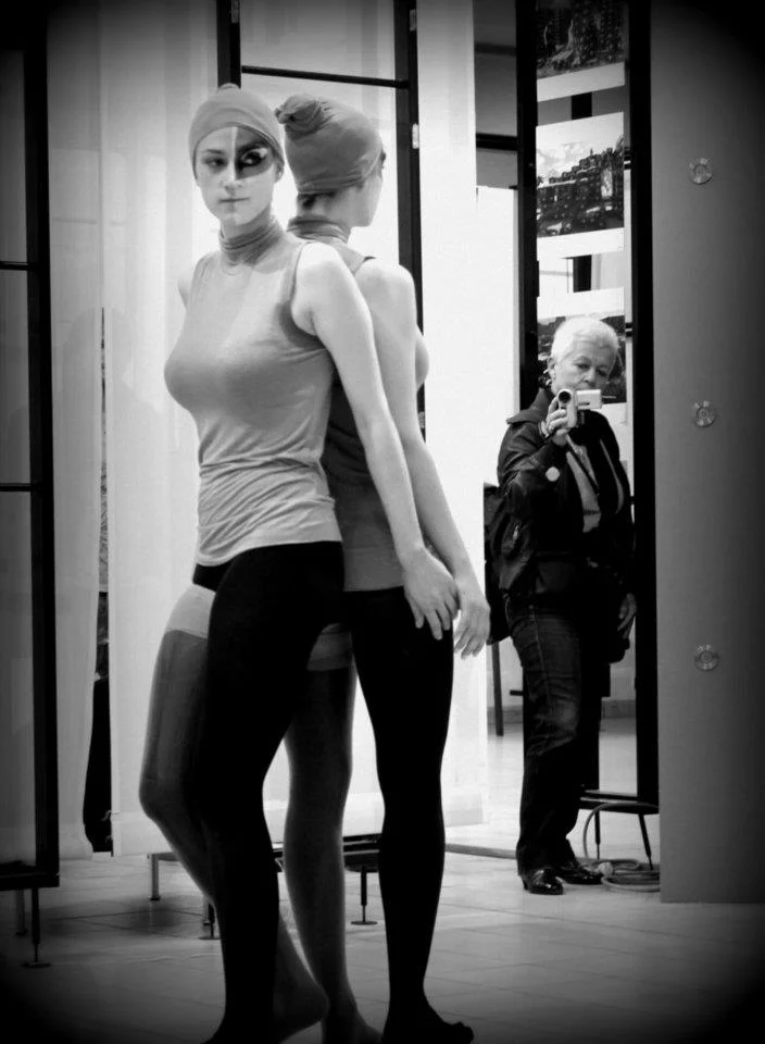 Choreographie: Der Körper, beziehungsweise der Tanz unterwirft sich den räumlichen Gegebenheiten. Er muss sich immer wieder anpassen, verdrehen, kleiner machen oder zusammenpressen, die eigene Form verleugnen und verändern. Das Ziel des Tanzes ist die Zerstörung der Geraden, der Grenzen, die den Körper immer wieder einengen.